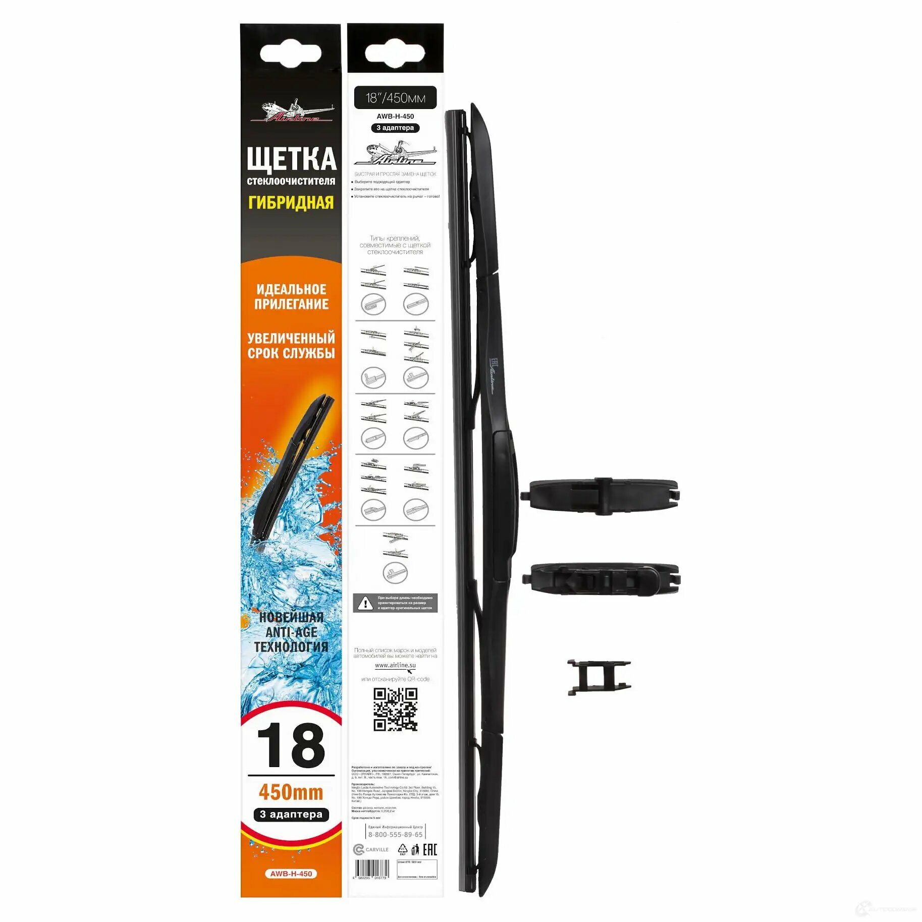 Airline AWB-H-450 (028000 / 1005018 / 104450) щетка стеклоочистителя гибрид 450мм (18) 3 адаптера (awb-h-450)