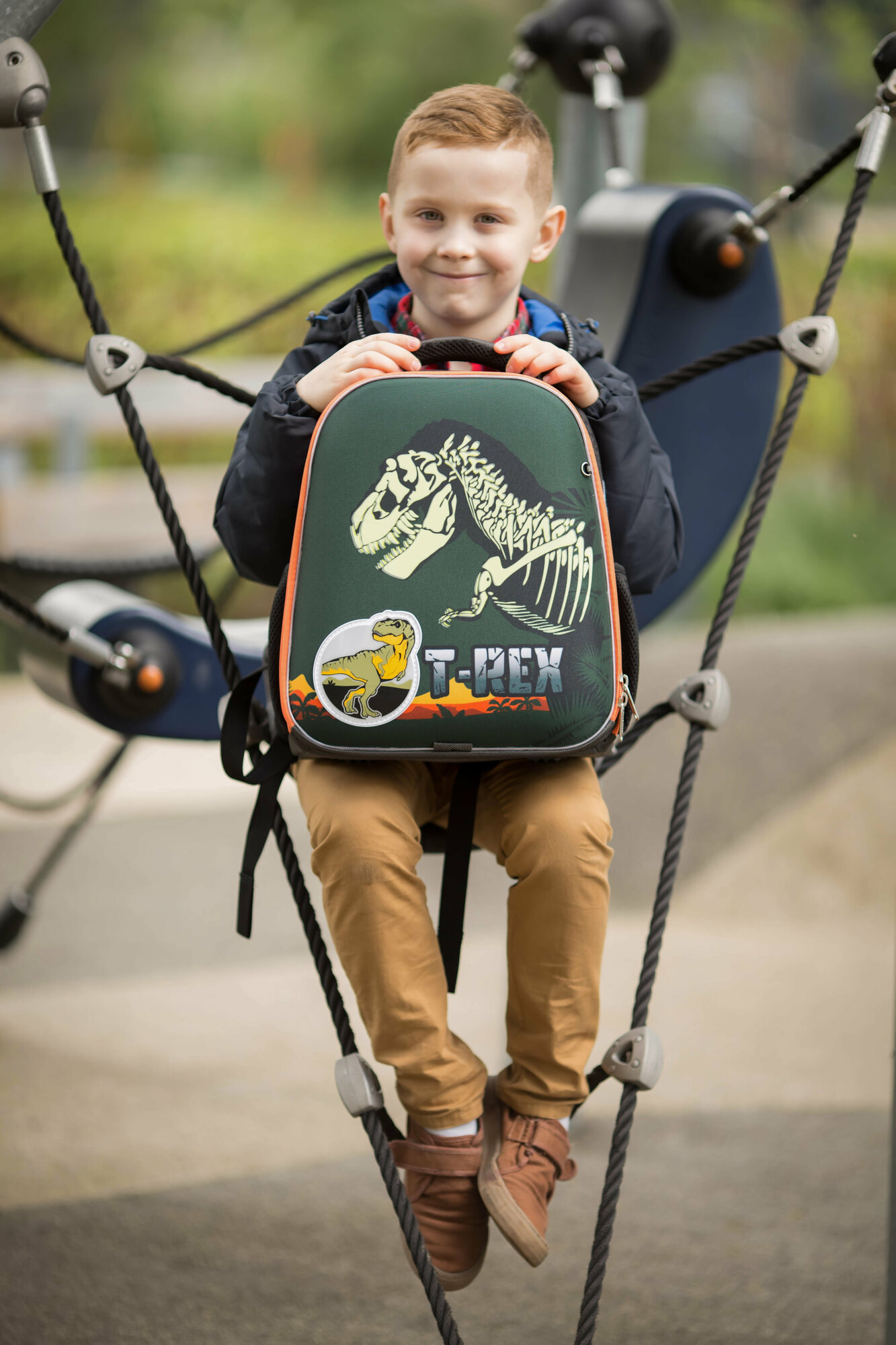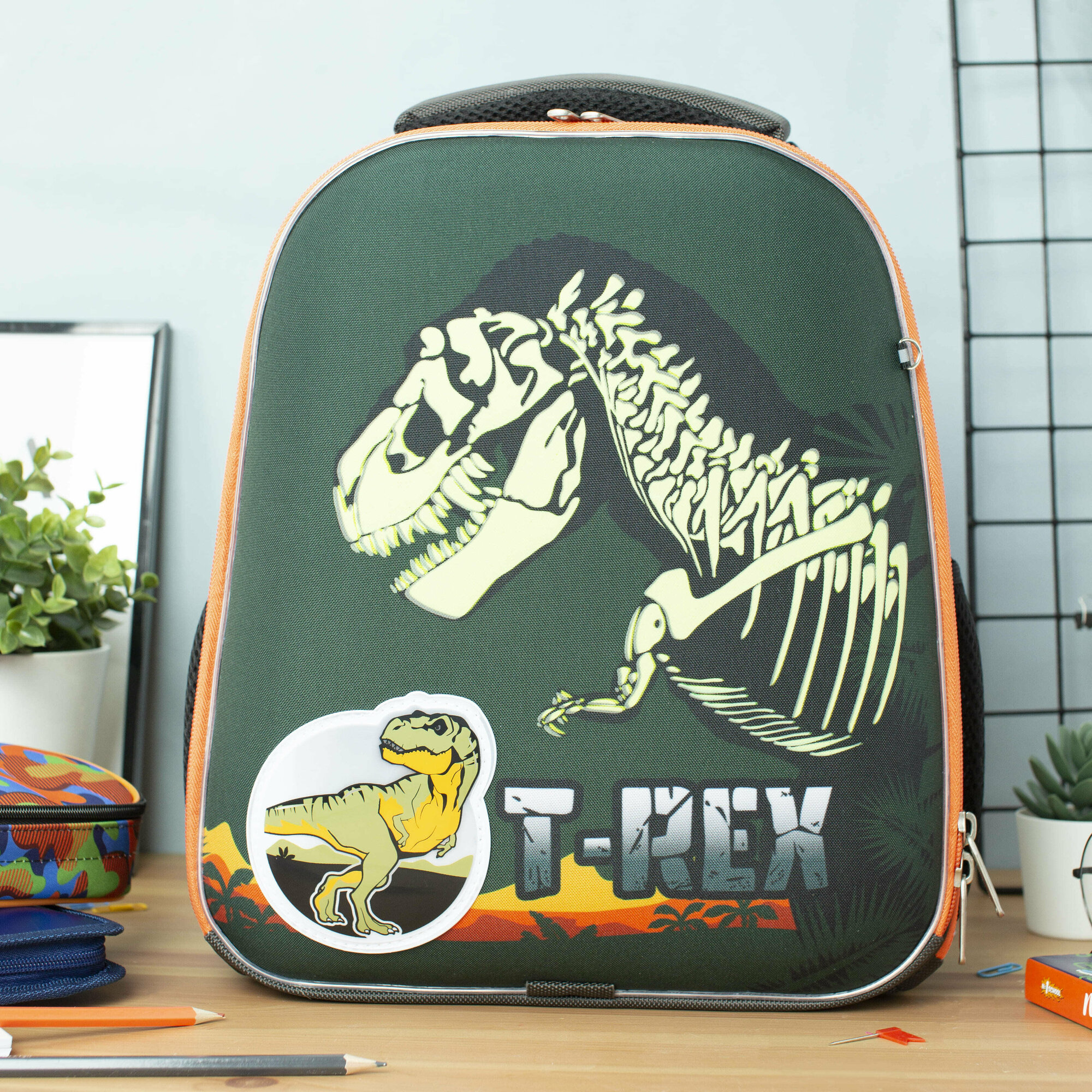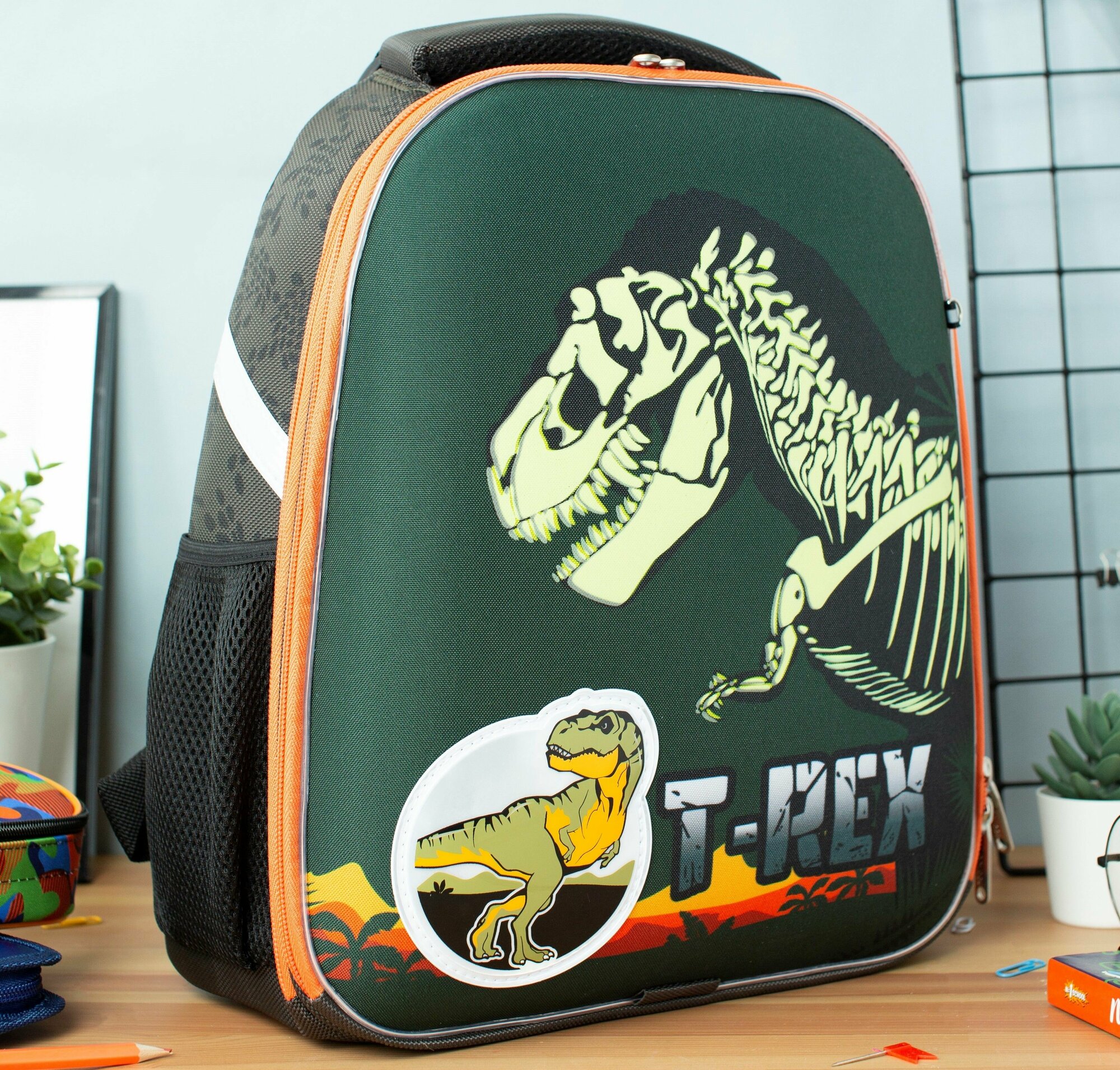 Ранец для первоклассника №1 School для мальчика, Basic, T-Rex, 2 отделения, ортопедическая спинка, светящийся кант
