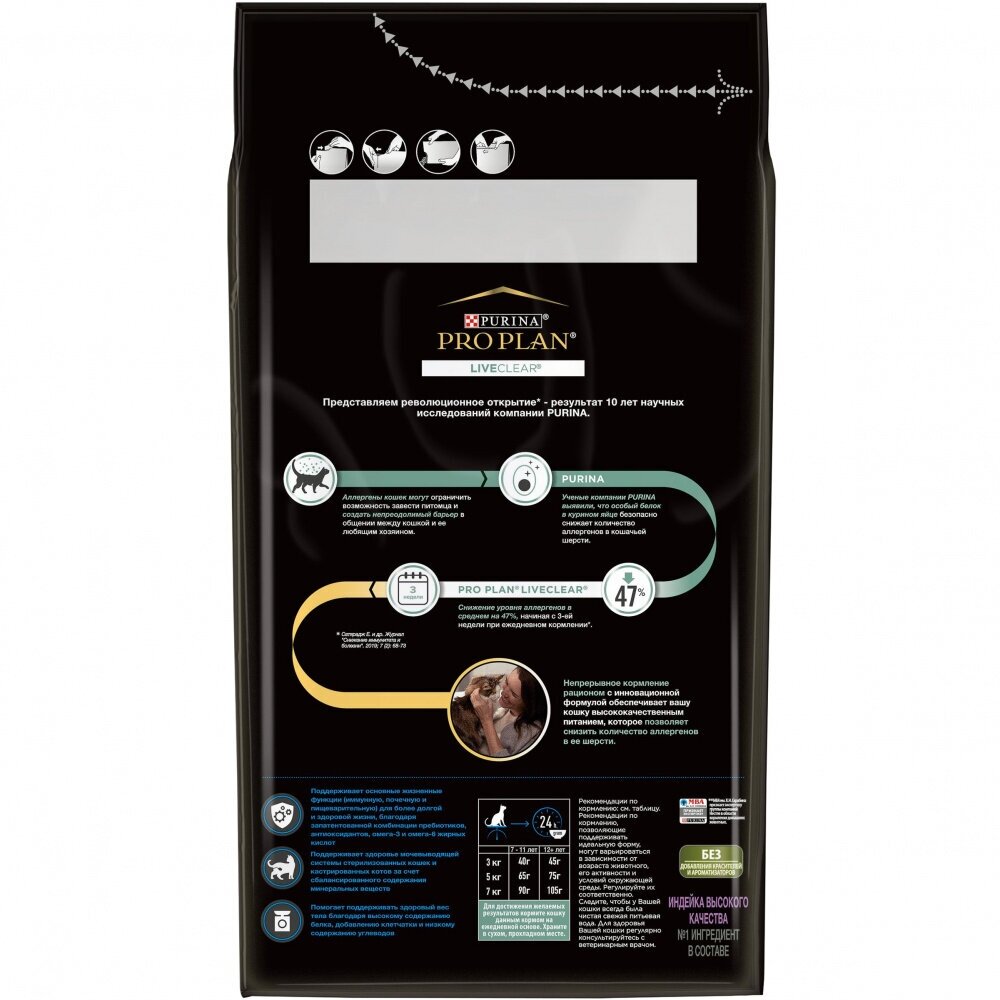 Корм Purina Pro Plan liveClear для стерилизованных кошек старше 7 лет, снижает количество аллергенов в шерсти, с индейкой