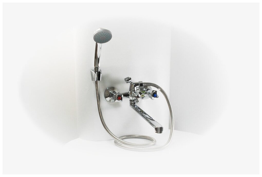 Смеситель ванно-душевой двуручный Juguni с металлическим шлангом и хром. лейкой, 0402.642A