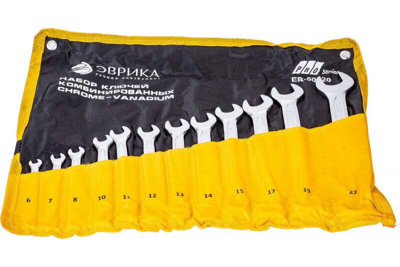 ER50120 эврика Набор ключей комбинированных 6-22мм 12 предметов в сумке CrV Pro эврика