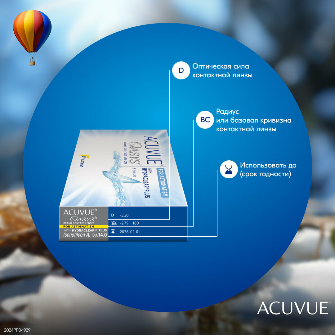 ACUVUE OASYS with Hydraclear Plus for Astigmatism (6 линз) BC 8,6 SPH -8.00 CYL -2,75 AXIS 110