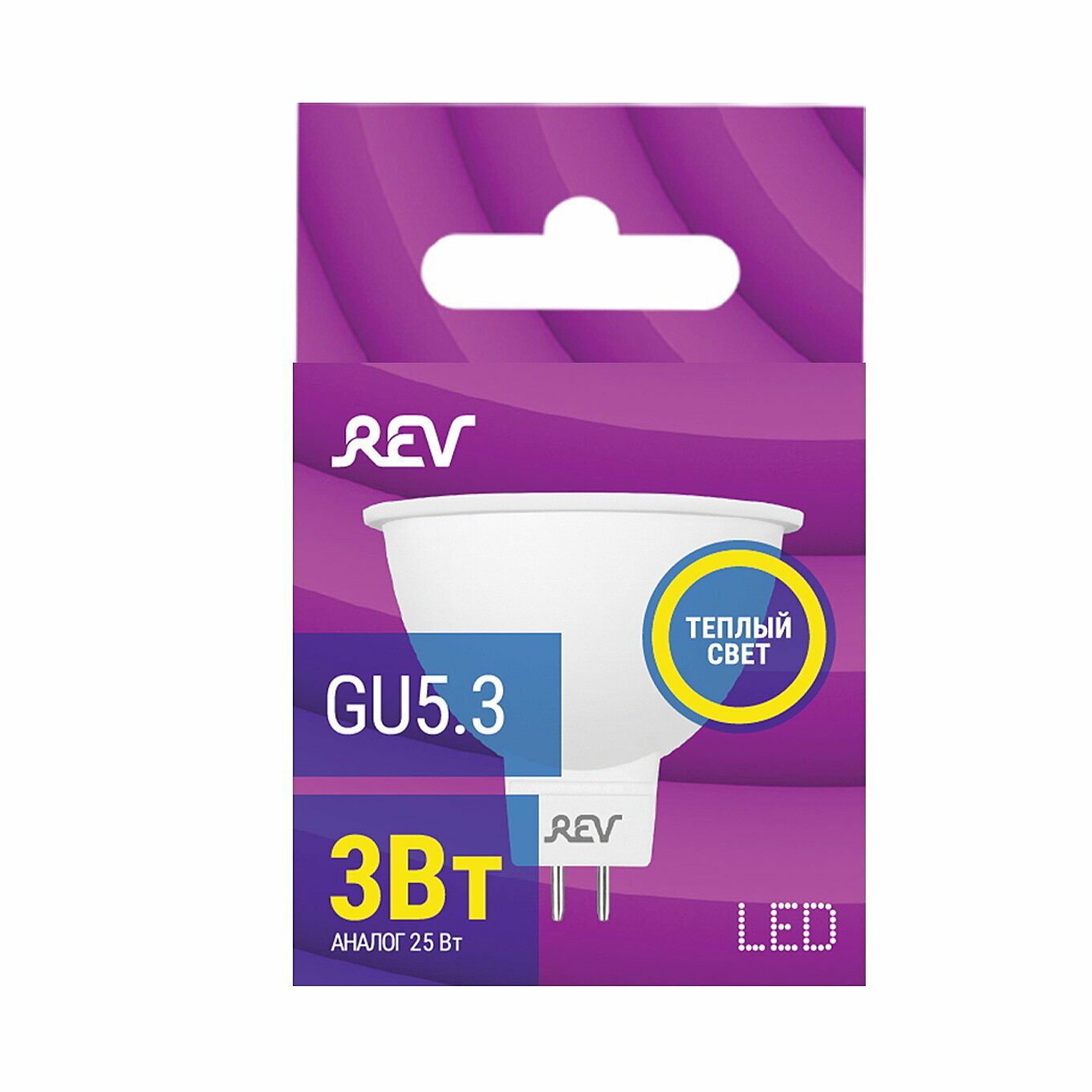 Лампа светодиодная MR16 GU5.3 3W 3000K теплый свет REV 32320 4 интересное: