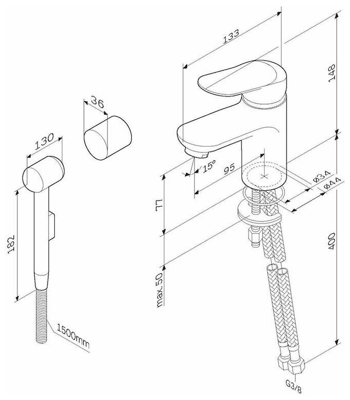 | Комплектация | Смеситель / гигиенический лейка / шланг / крепления / инструкция |