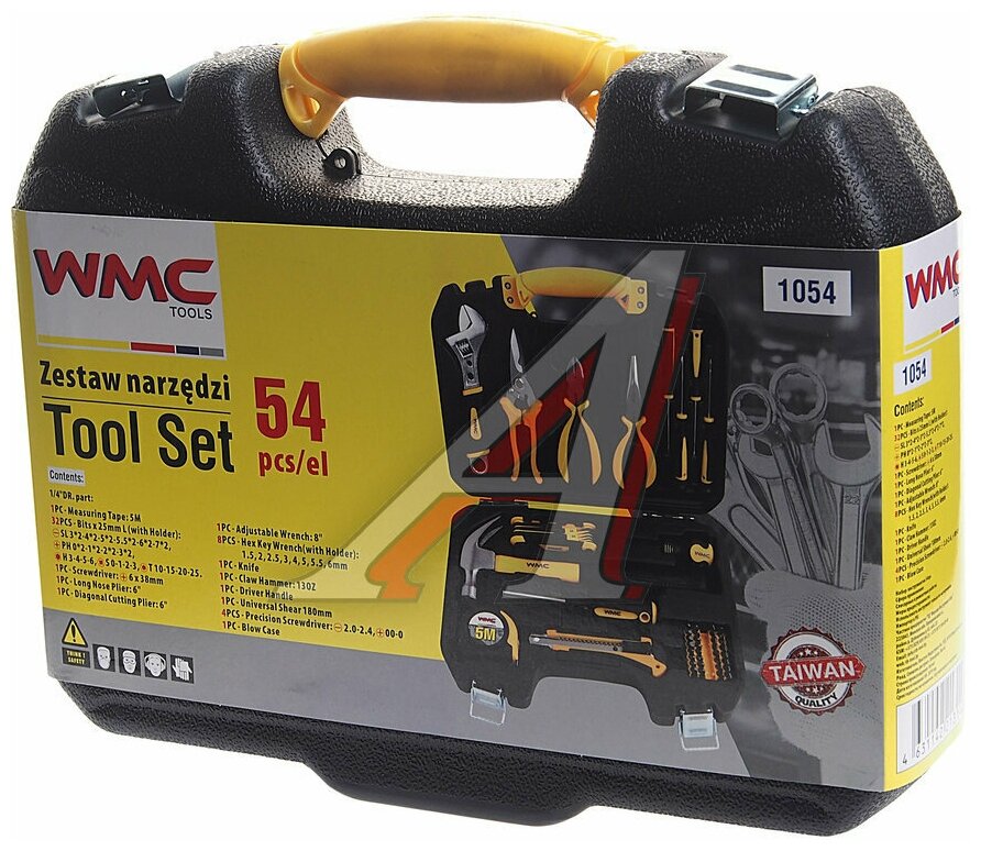 Купить WMC-1054 Набор инструментов 54пр.(шарнирно-губцевый, ударный, отвертки, биты)