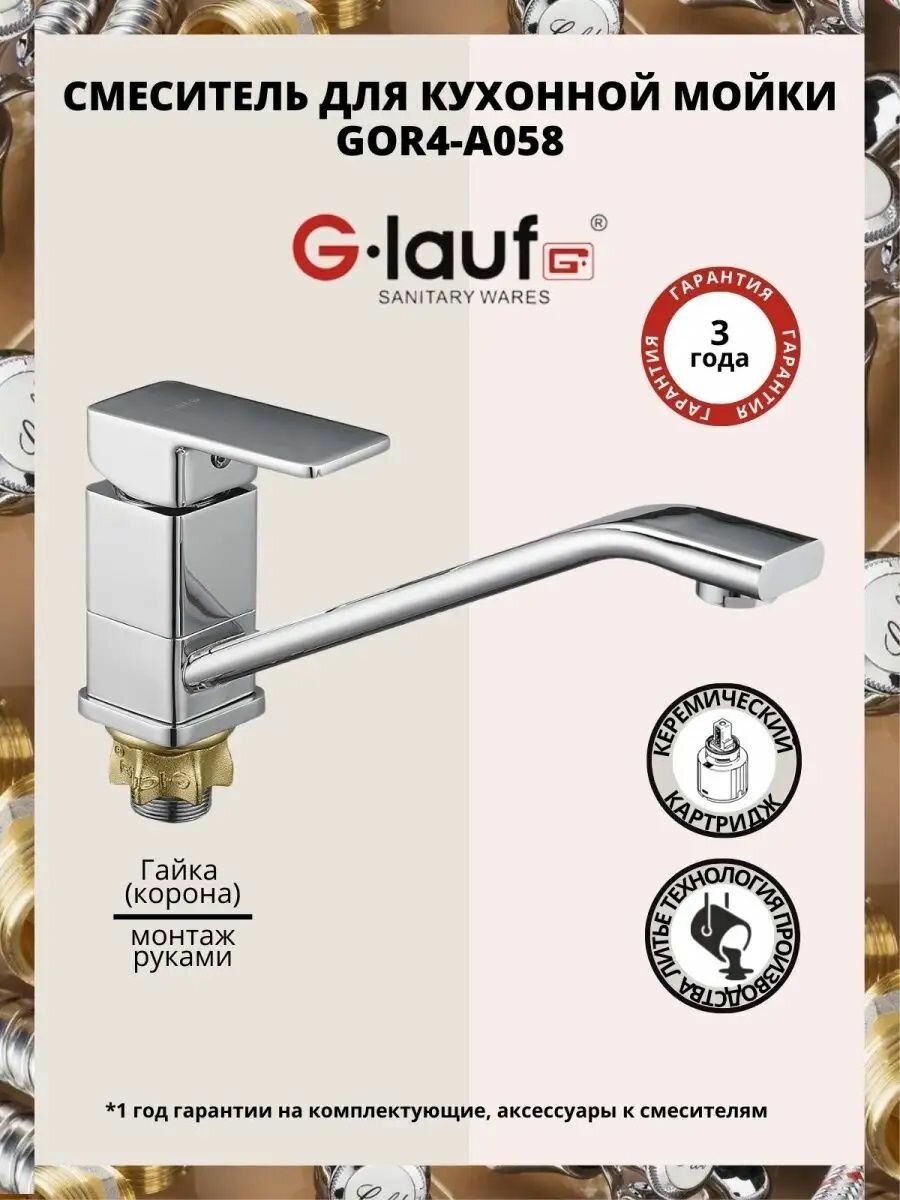 Смеситель для кухни 35к Glauf GOR4-A058 п/гайку