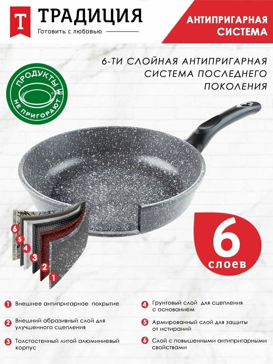 СохранитьСковорода Традиция Мрамор антипригарное покрытие литая 26см / ТМ2261 интересное: