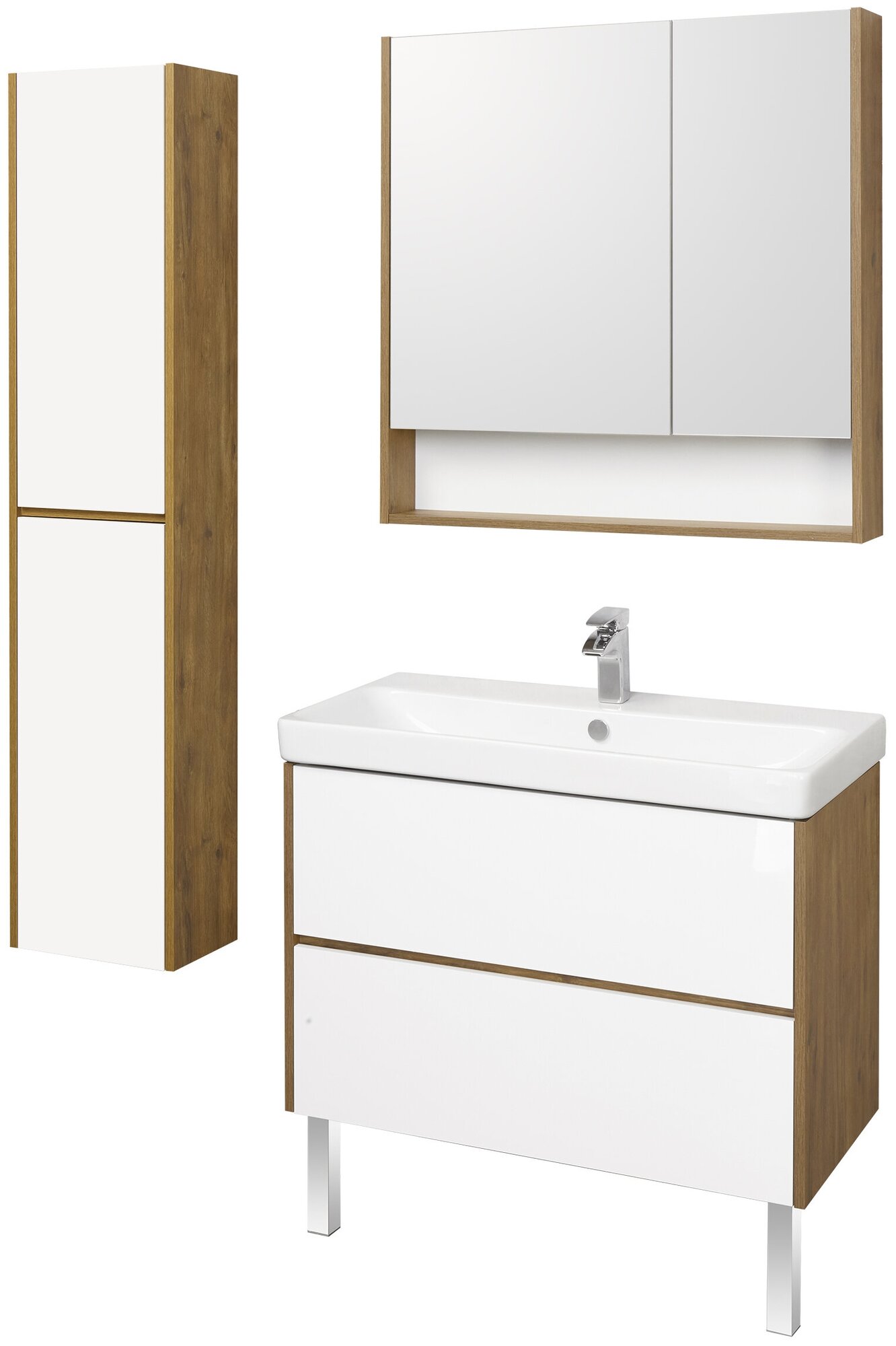 Тумба под раковину AQUATON Сканди 80 Белый матовый/Белый глянец 1A283001SD010