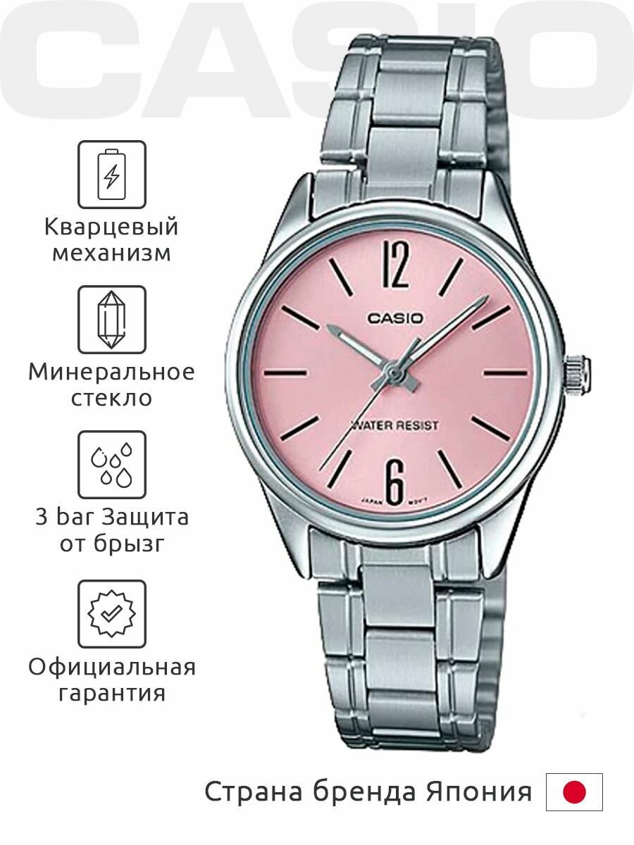 Наручные часы CASIO LTP-V005D-4B, розовый, серебряный