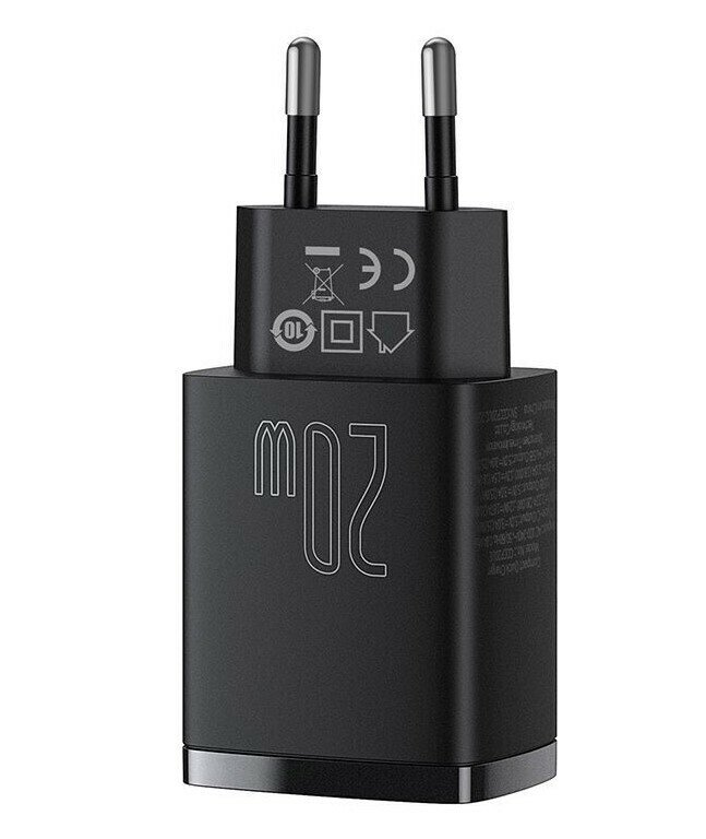 Зарядное устройство Baseus Compact Quick Charger, U+C 20W EU, Черный, CCXJ-B01 с быстрой зарядкой