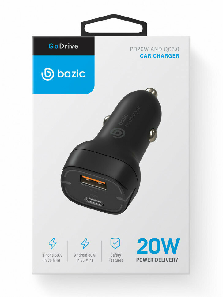 Купить Автозарядка EnergEA Bazic GoPort PD20+ с 2 портами USB-С и USB-A PD20 QC3.0 Black (GDV-PD20-BLK)