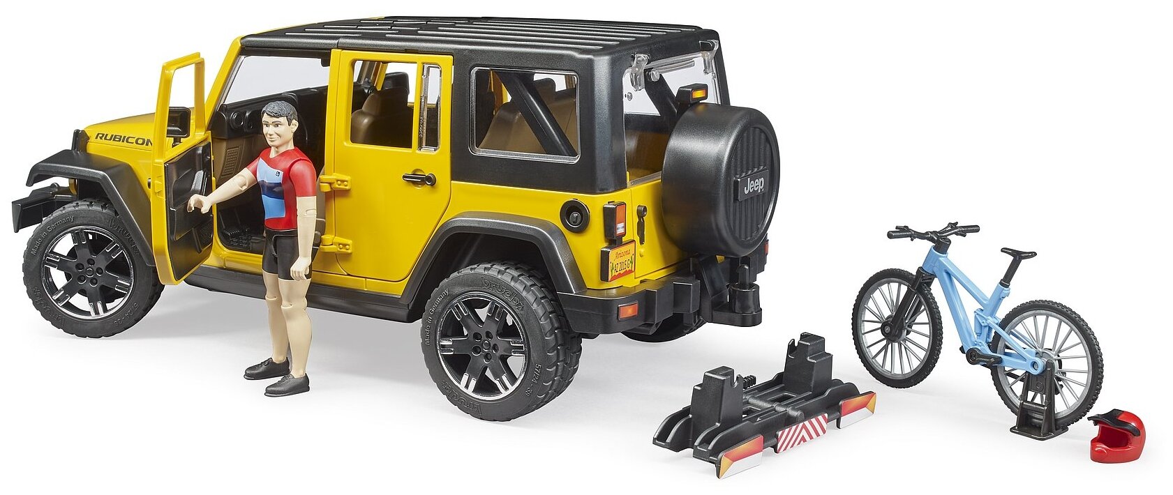 Автомобиль игрушечный Bruder Внедорожник Wrangler Rubicon Unlimited c велосипедистом и фигуркой, арт. 02543