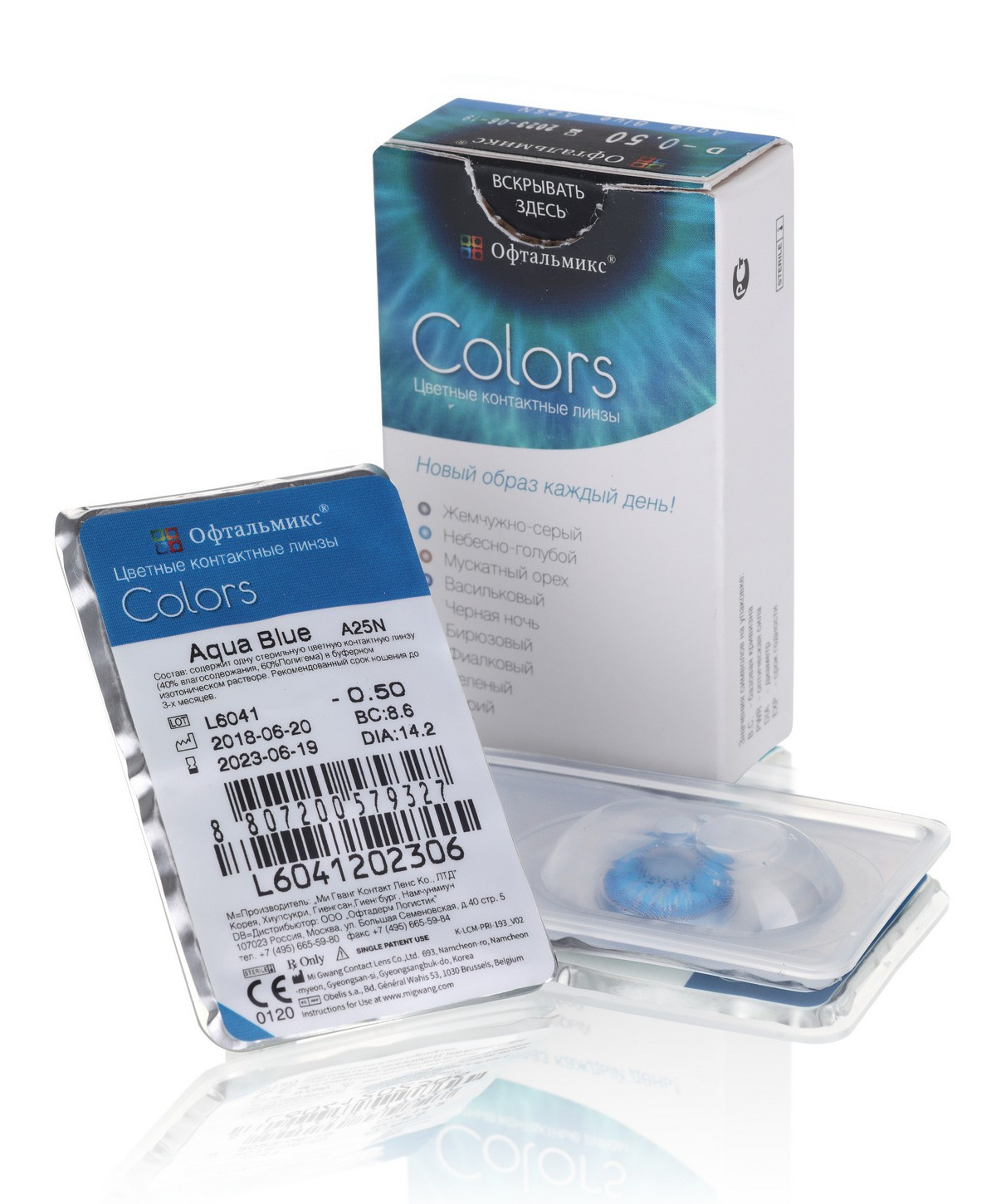 Офтальмикс Colors New (2 линзы)-0.50 R.8.6 Aqua(Васильковый)