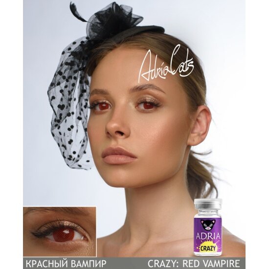 СохранитьКонтактные линзы цветные ADRIA, Adria Crazy, Квартальные, RED VAMPIRE, -0,00 / 14 / 8,6 / 1 шт. интересное: