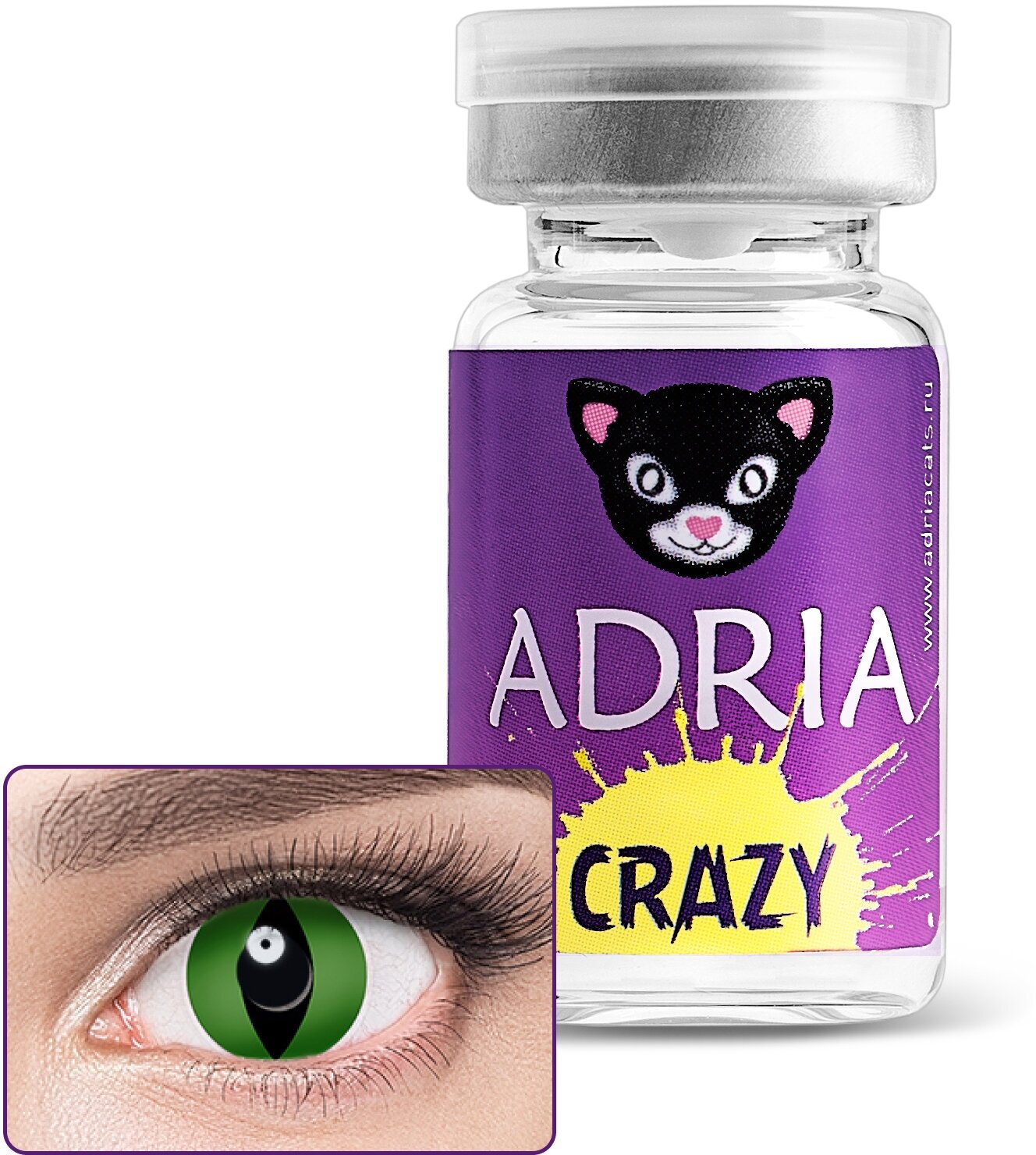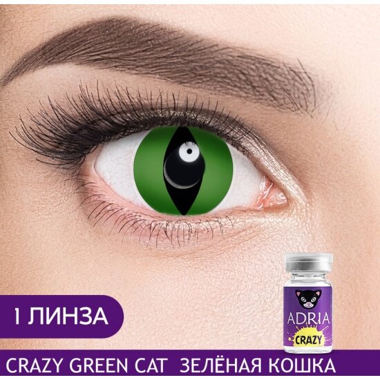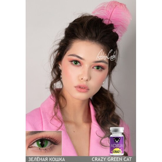 Купить Контактные линзы цветные ADRIA, Adria Crazy, Квартальные, GREEN CAT, -0,00 / 14 / 8,6 / 1 шт.