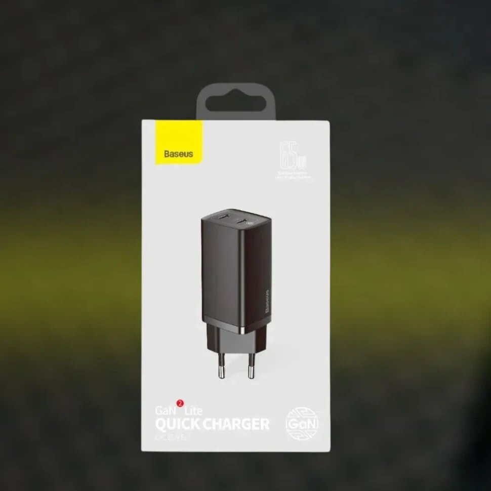 Сетевое зарядное устройство Baseus GaN2 Lite Quick Charger USB-C+USB-A 65W Black