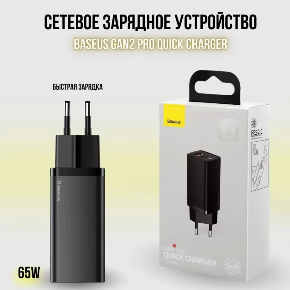 СохранитьСетевое зар. устр. Baseus GaN2 Lite Quick Charger 1USB/1C 65W (CCGAN2L-B01) черное интересное: