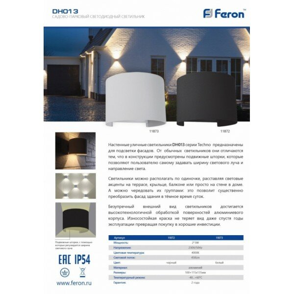 СохранитьУличный настенный светильник Feron DH013 11872 интересное: