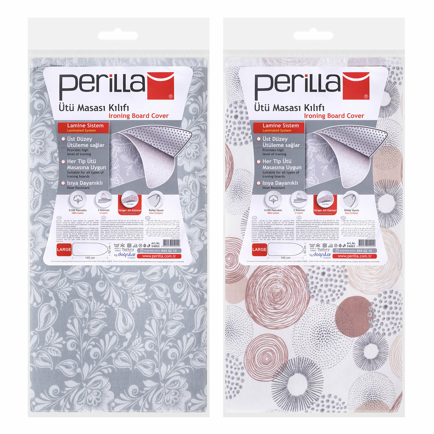 Комплект 2 шт, Чехол для гладильной доски универсальный, 140х52 см, большой, цвет ассорти, Тефлон, DOGRULAR, UAB54003