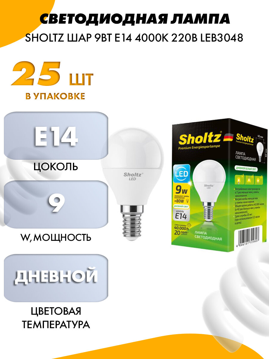Светодиодная лампа Sholtz шар 9Вт E14 4200К G45 220-240В пластик интересное: