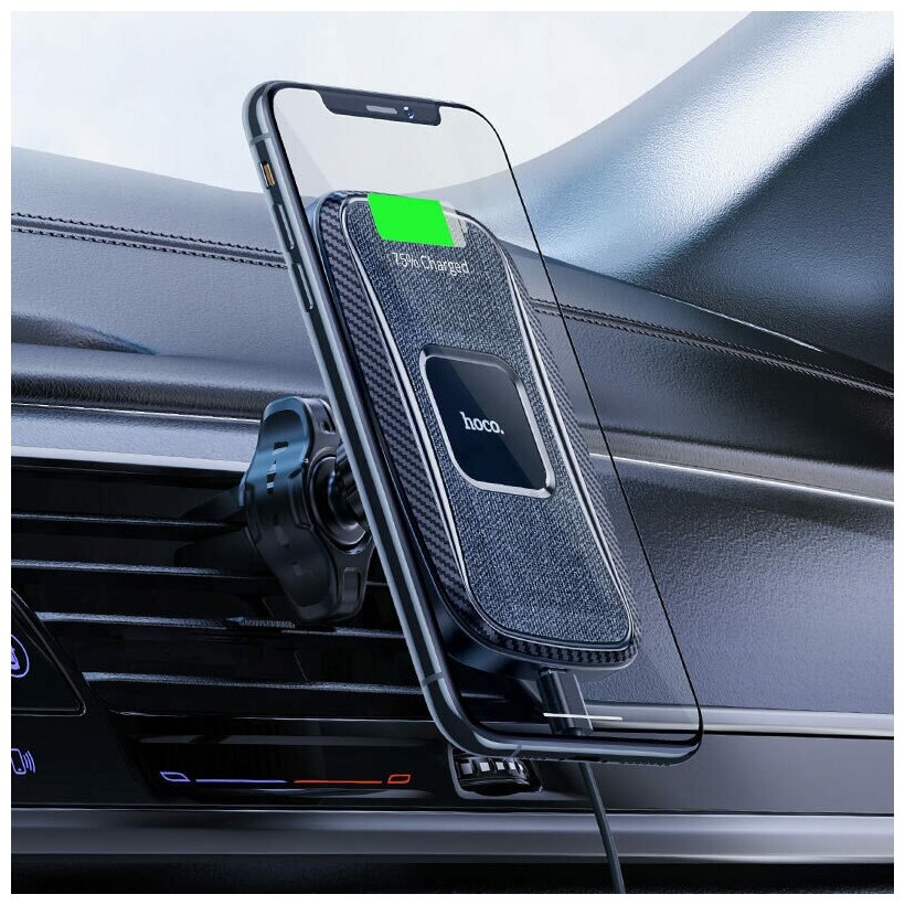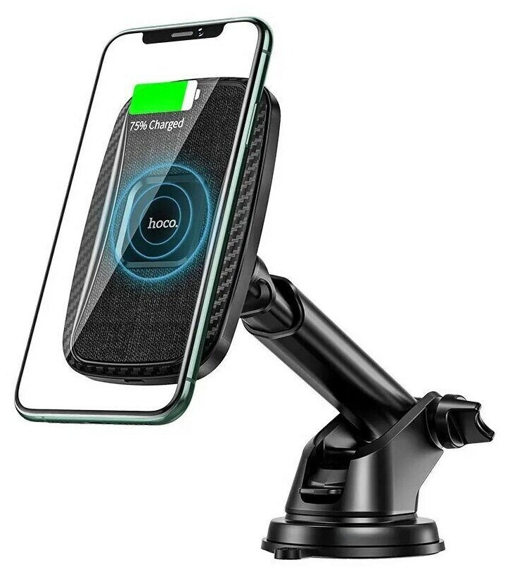 Держатель автомобильный HOCO CA75 15W "с функцией беспроводная зарядка", черный