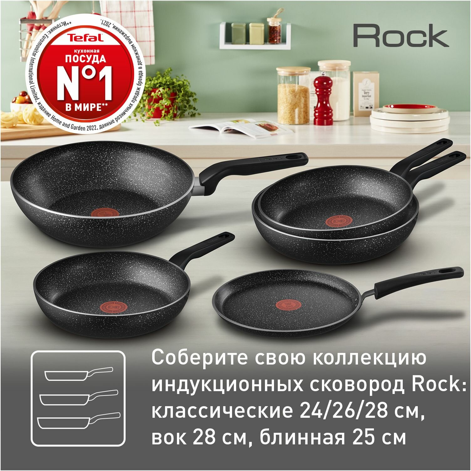 Сковорода Tefal Rock 04235126, 26 см, с индикатором температуры, с антипригарным покрытием, подходит для индукции