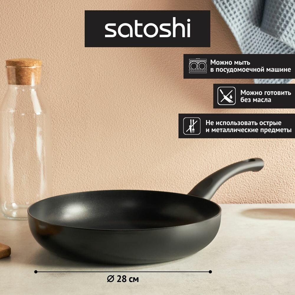 Сковорода Satoshi Графит, 28 см, с антипригарным покрытием, без крышки, индукция