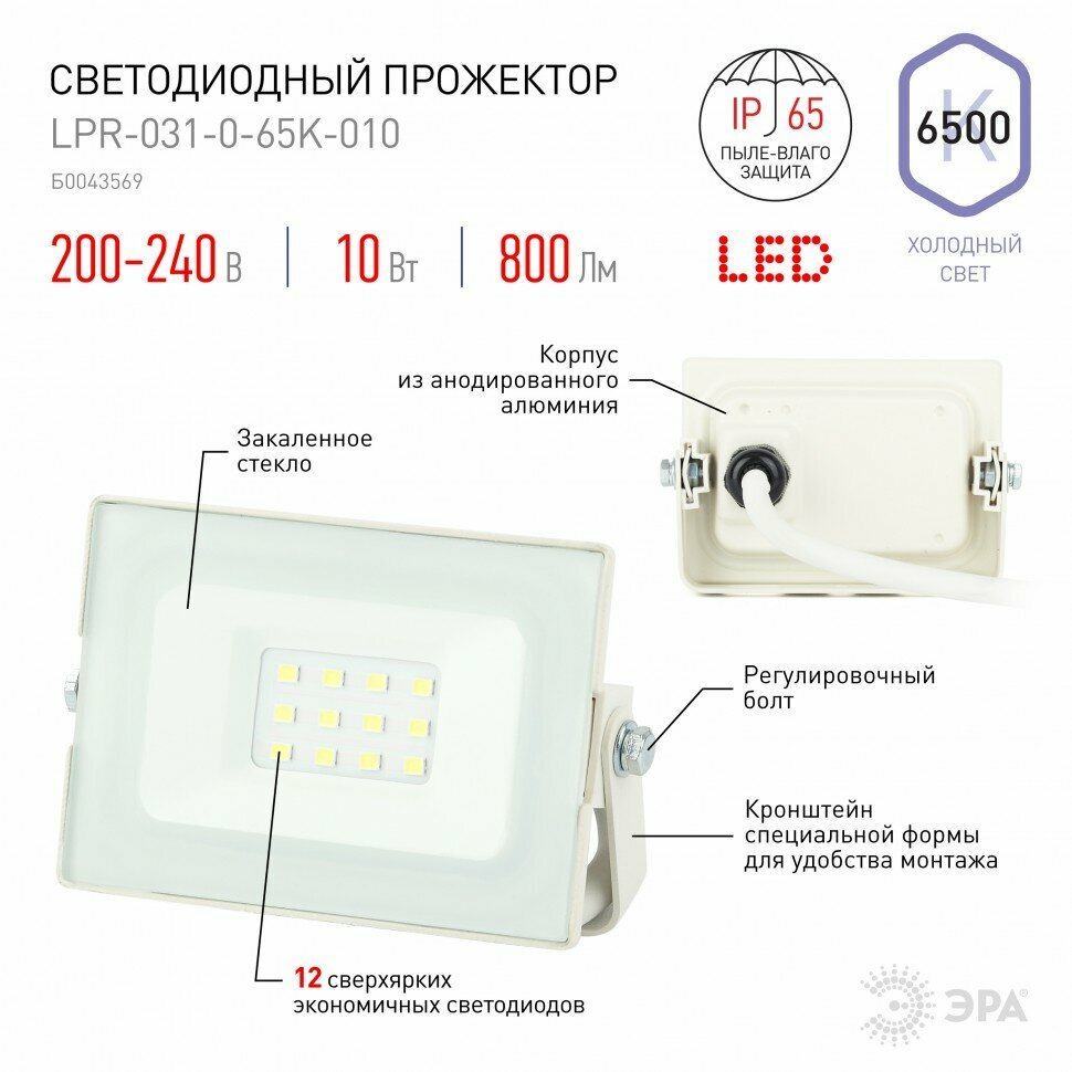 Прожектор уличный ЭРА LPR-031-0-65K-010, 10Вт [б0043569]