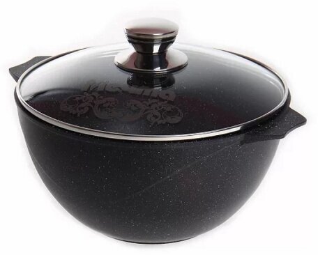 Казан для плова "Мечта" 10л Гранит с антипригарным покрытием со стеклянной крышкой, можно мыть в посудомоечной машине