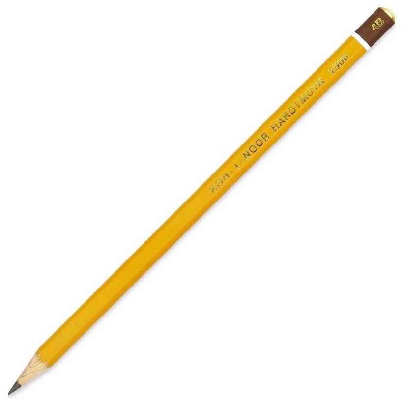 Карандаш чернографитный KOH-I-NOOR 1500, 1 шт., 4B, без резинки, корпус желтый, заточенный, 150004B01170RU (цена за 1 ед.товара)