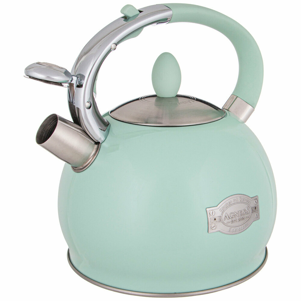 Чайник Agness Со Свистком, Серия Meadow, 3,0 Л Термоаккумулирующее Дно, Индукция Цвет: Мятный 937-8 937-838