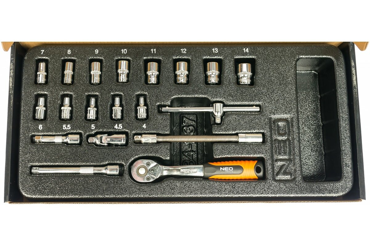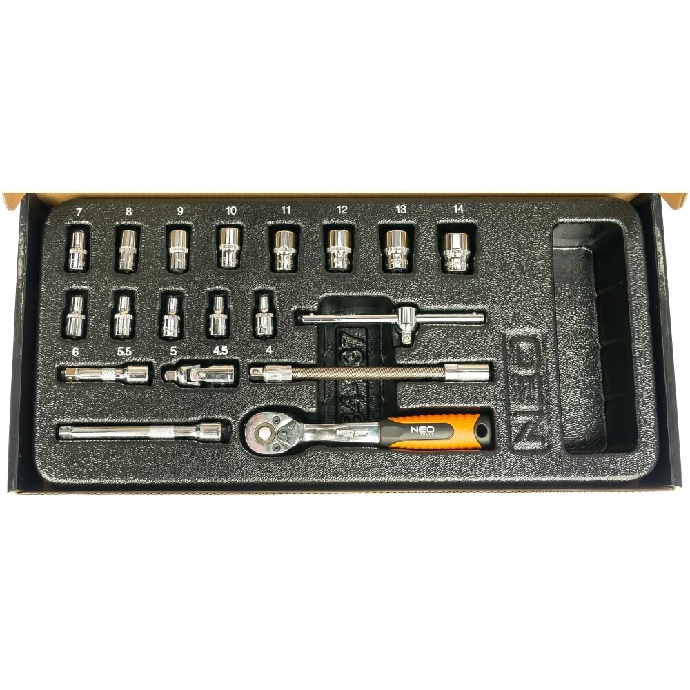 NEO 84-237 (84237_NE0) набор головок с трещоткой 1 / 4, 19 шт., ложемент\