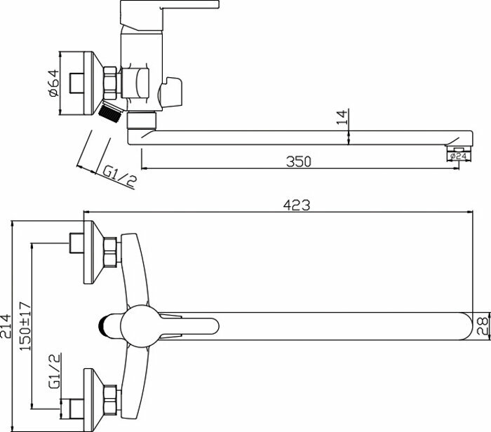 | Длина излива | 350 мм |