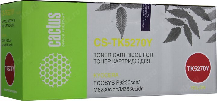 Купить Картридж лазерный CACTUS (CS-TK5270Y) для Kyocera P6230cdn/M6230cidn/M6630cidn, желтый, ресурс 6000 страниц