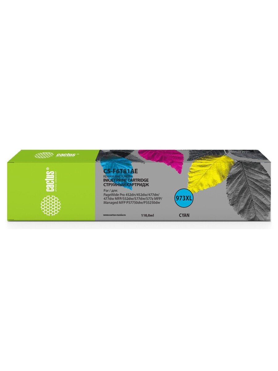 СохранитьCartridge ink Cactus 973XL CS-F6T81AE cyan (110ml) for HP HP PageWide Pro 452dw/Pro 477dw интересное: