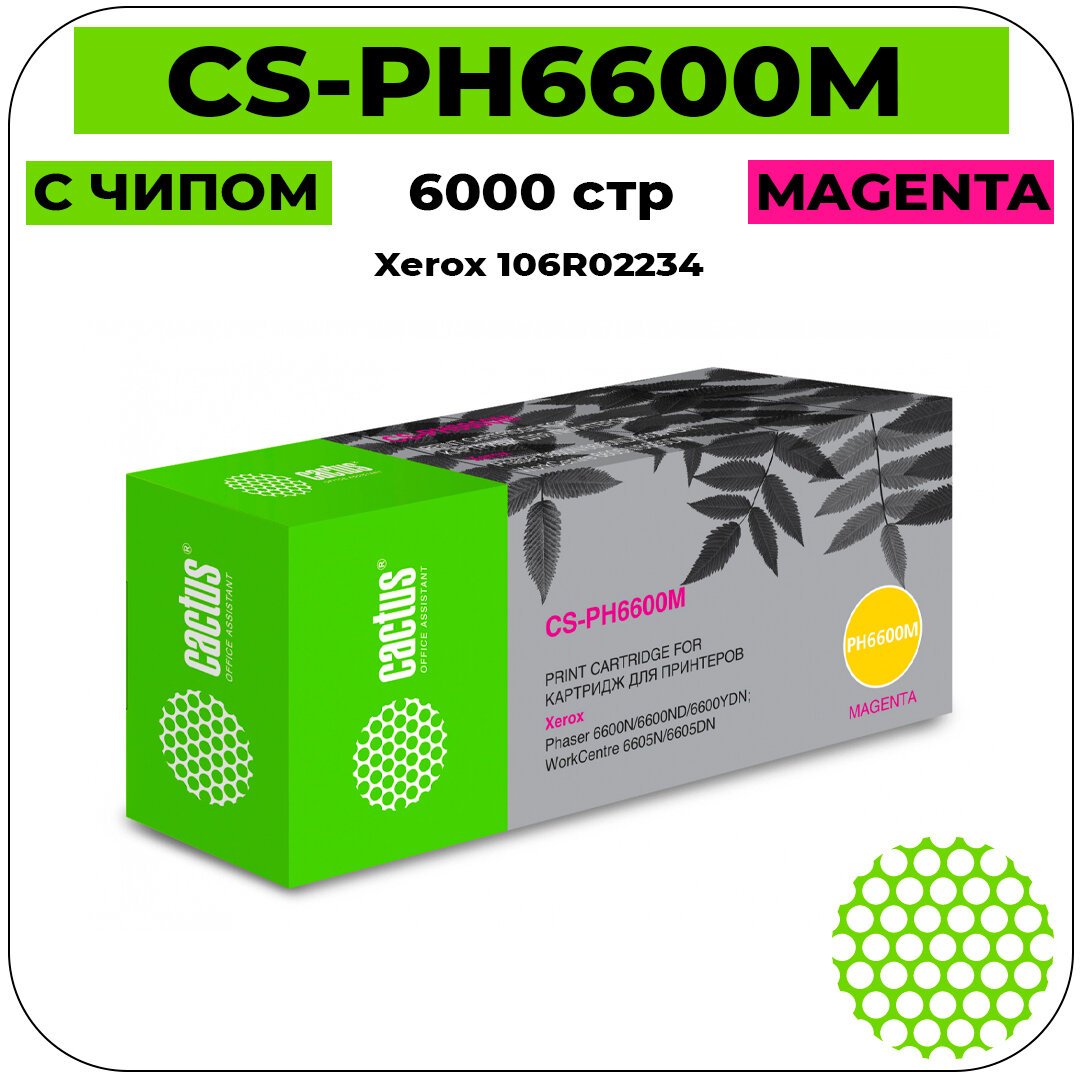 Картридж лазерный Cactus 106R02234 CS-PH6600М пурпурный бар.в компл. (6000стр.) для Xerox Phaser 6600 /WorkCentre 6605
