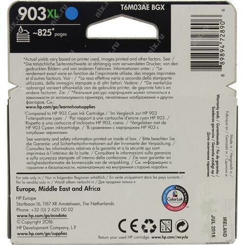 Картридж HP 903XL T6M03AE для OfficeJet Pro 6960 AiO OfficeJet Pro 6970 AiO голубой