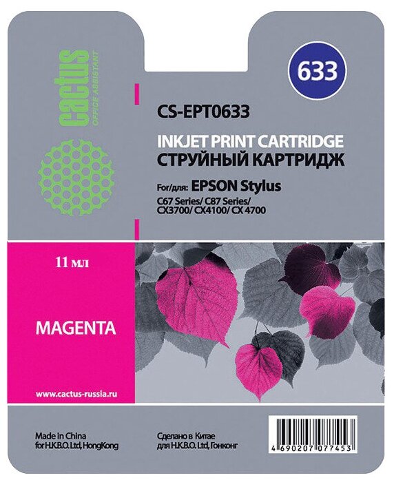 Картридж струйный Cactus CS-EPT0633 T0633 пурпурный (10мл) для Epson C67/C87/CX3700/CX4100/CX4700