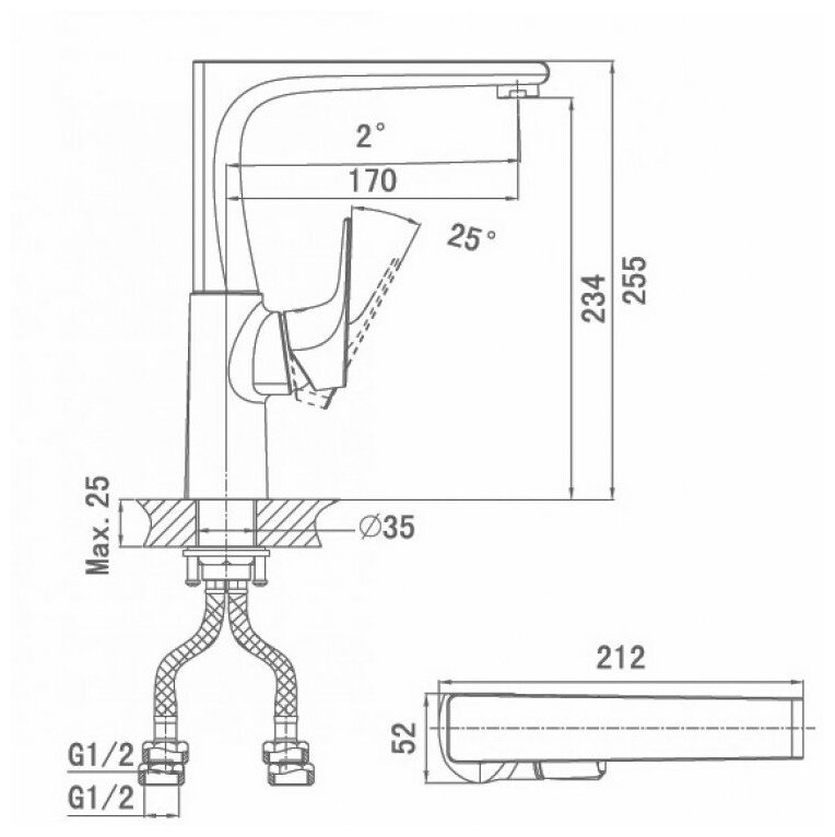 | Комплектация | смеситель - 1 шт., гибкая подводка - 2 шт., крепежная гайка - 1 шт., паспорт изделия - 1 шт., брендовая сумка - 1 шт. |