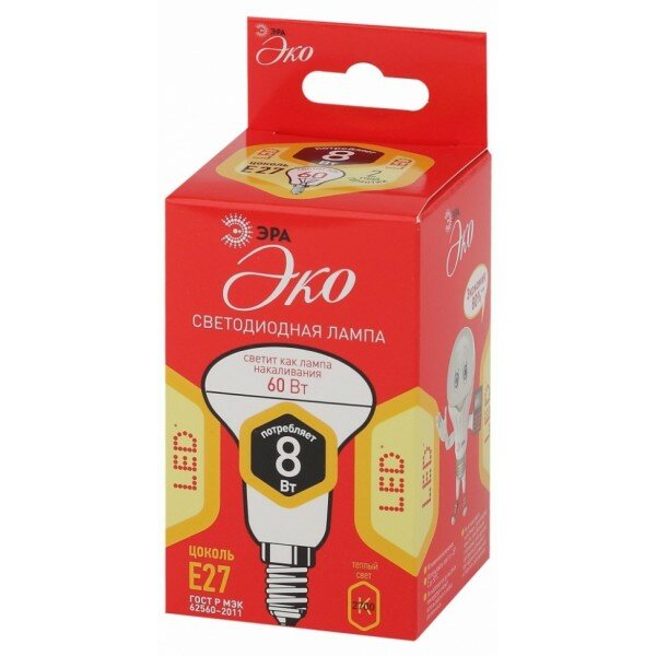 ЭРА Лампа светодиодная E27 8Вт ЭРА ECO LED R63-8W-827-E27 интересное: