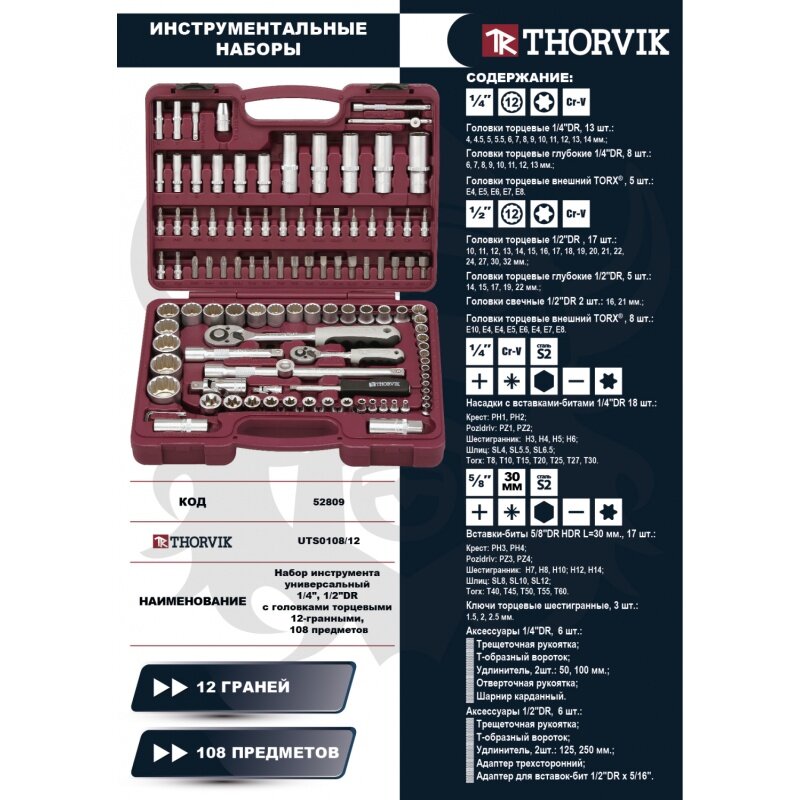 UTS0108/12 Набор инструмента универсальный 1/4", 1/2"DR с головками торцевыми 12-гранными, 108 предметов Thorvik
