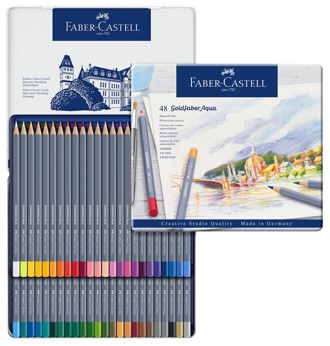 Купить Faber-Castell Акварельные карандаши Faber-Castell "Goldfaber Aqua", в металлической коробке, 48 шт