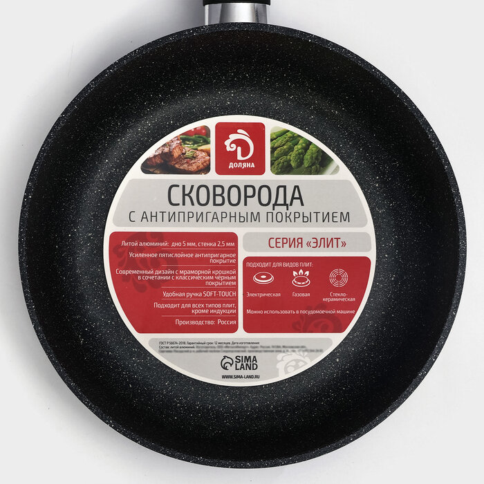 Сковорода Доляна «Элит», d=24 см, пластиковая ручка, антипригарное покрытие, цвет чёрный интересное: