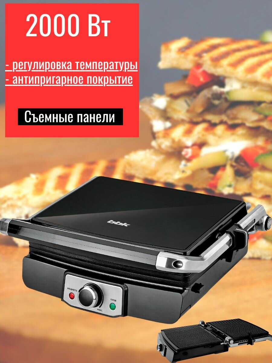 Электрогриль BBK BEG2001 черный/металлик