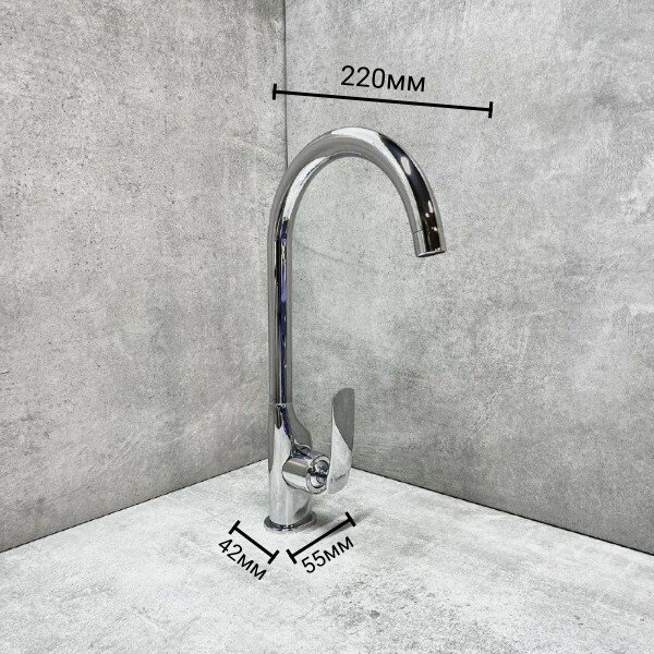 Haiba Смеситель для кухни (Lt) трубчатый поворотный излив, керам.карт.35мм, гайка, хром, HB70616