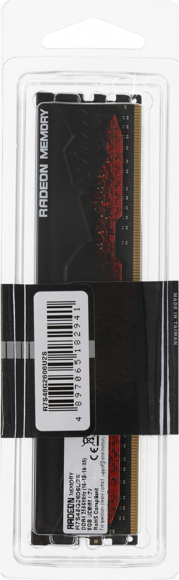 Модуль памяти AMD Radeon™ R7 Performance Series Black Gaming Memory R7S48G2606U2S 8GB DDR4 2666 DIMM Non-ECC, CL16, 1.2V, Heat Shield, RTL, (182941)
