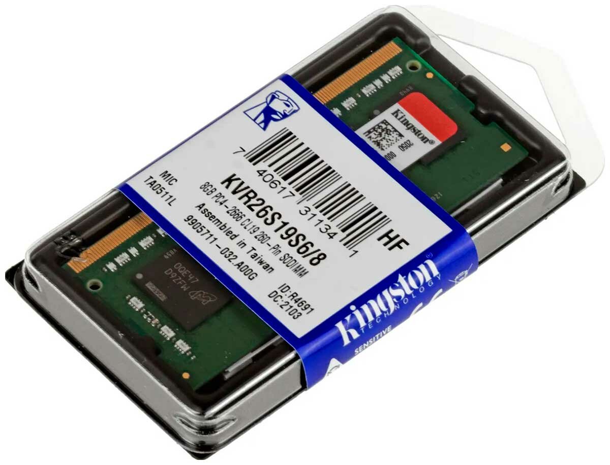 Оперативная память Kingston VALUERAM KVR26S19S6/8 DDR4 - 8ГБ 2666МГц, для ноутбуков (SO-DIMM), Ret