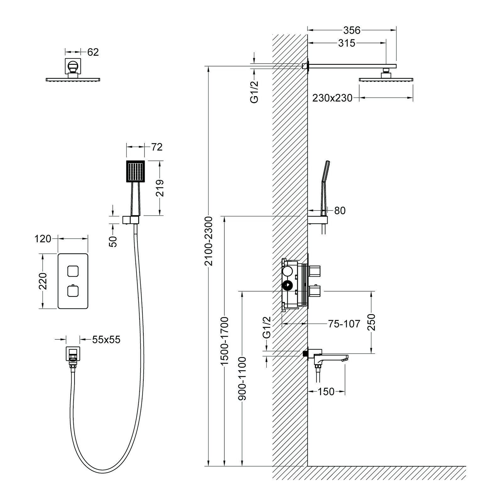 | Комплектация | Смеситель с монтажной коробкой / скрытого монтажа / с термостатом - 1 шт. Штанга тропического душа с декоративным отражателем - 1 шт. Тропический душ (пластик) - 1 шт. Ручная лейка 1- режимная (пластик) - 1 шт. Держатель ручной лейки (латунный) - 1 шт. Декоративная накладка смесителя (латунная) - 1 шт. Ручка дивертора - 1 шт. Ручка управления термостатом - 1 шт. Ручка переключения в режим "излив" - 1 шт. Шланг душа 1,5 м - 1 шт. Излив поворотный с подключением шланга (латунный) - 1 шт. Инструкция - 1 шт. |