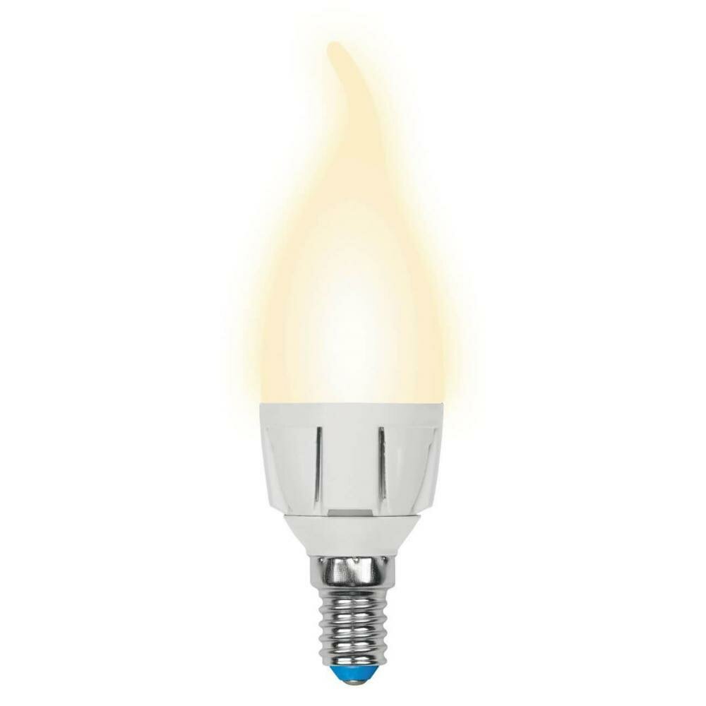 Светодиодная лампа UNIEL LED-CW37 7W/3000K/E14/FR/DIM PLP01WH диммируемая. Форма «свеча на ветру», матовая. Серия Яркая. Теплый белый свет (3000K). Картон.