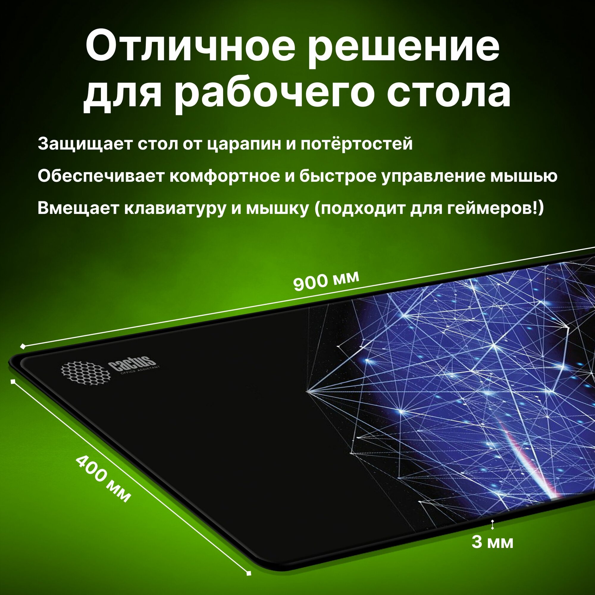 Коврик для мыши Cactus Blue Cosmic черный/рисунок 900x400x3мм .